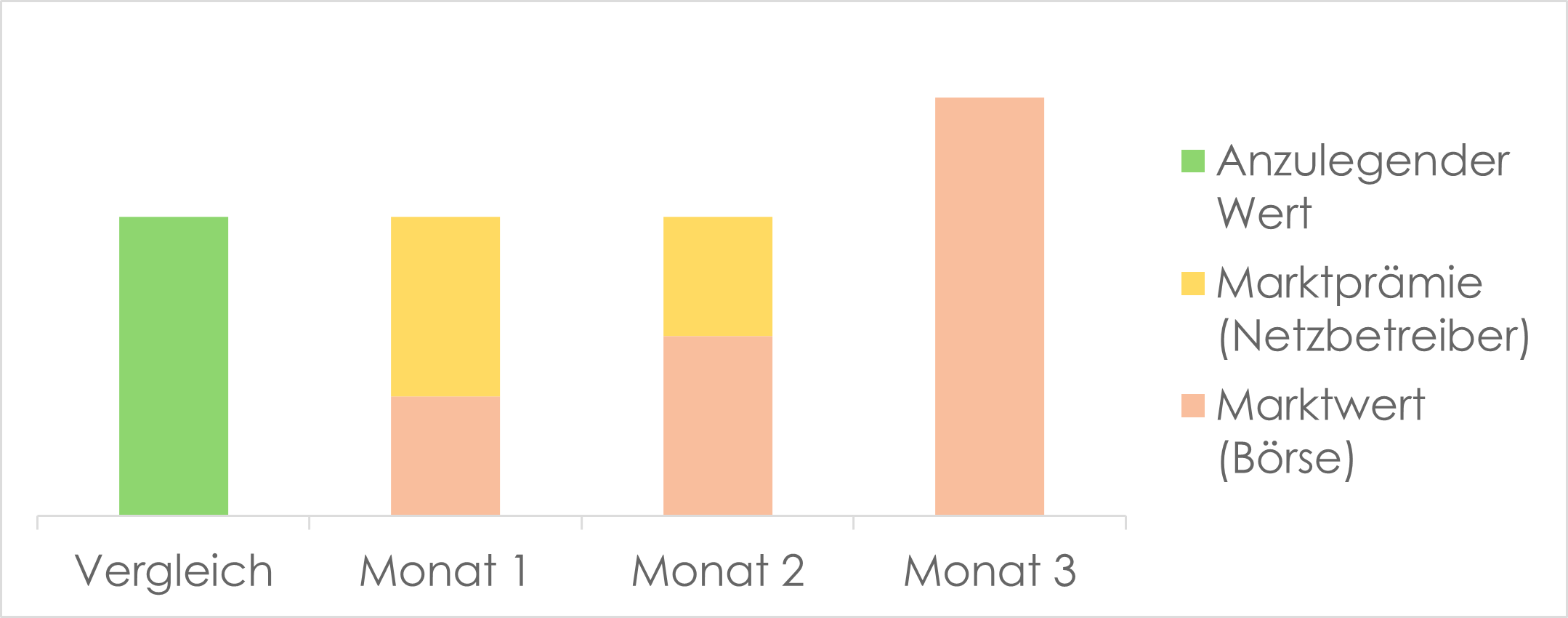 Es kann vorkommen, dass Ihre Vermarktungserlöse über dem anzulegenden Wert liegen – in diesem Falle erhalten Sie keine Auszahlung durch den Netzbetreiber. Diese erfolgt nur, sollte die erzielte Vergütung unter dem anzulegenden Wert liegen – als Sicherung Ihrer Mindestvergütung.